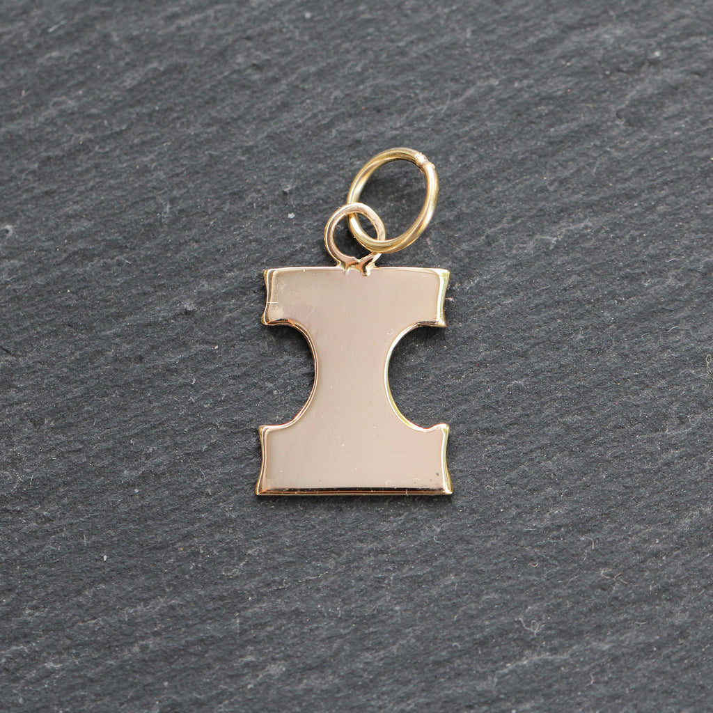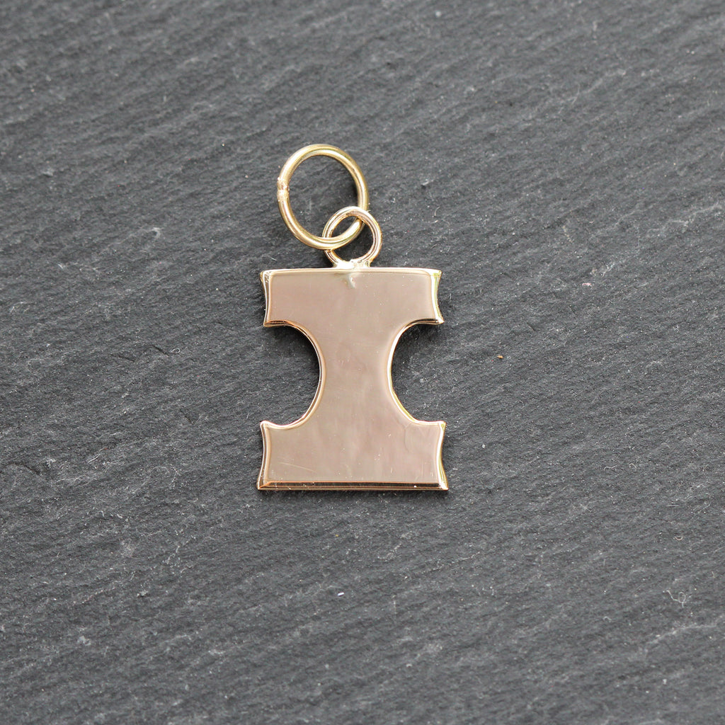This 14k yellow gold hand cut western-style letter I initial pendant is the perfect simple add to any neckmess and a great gift idea as well!