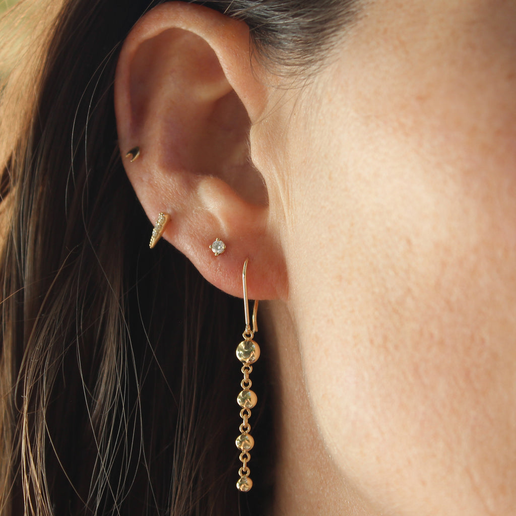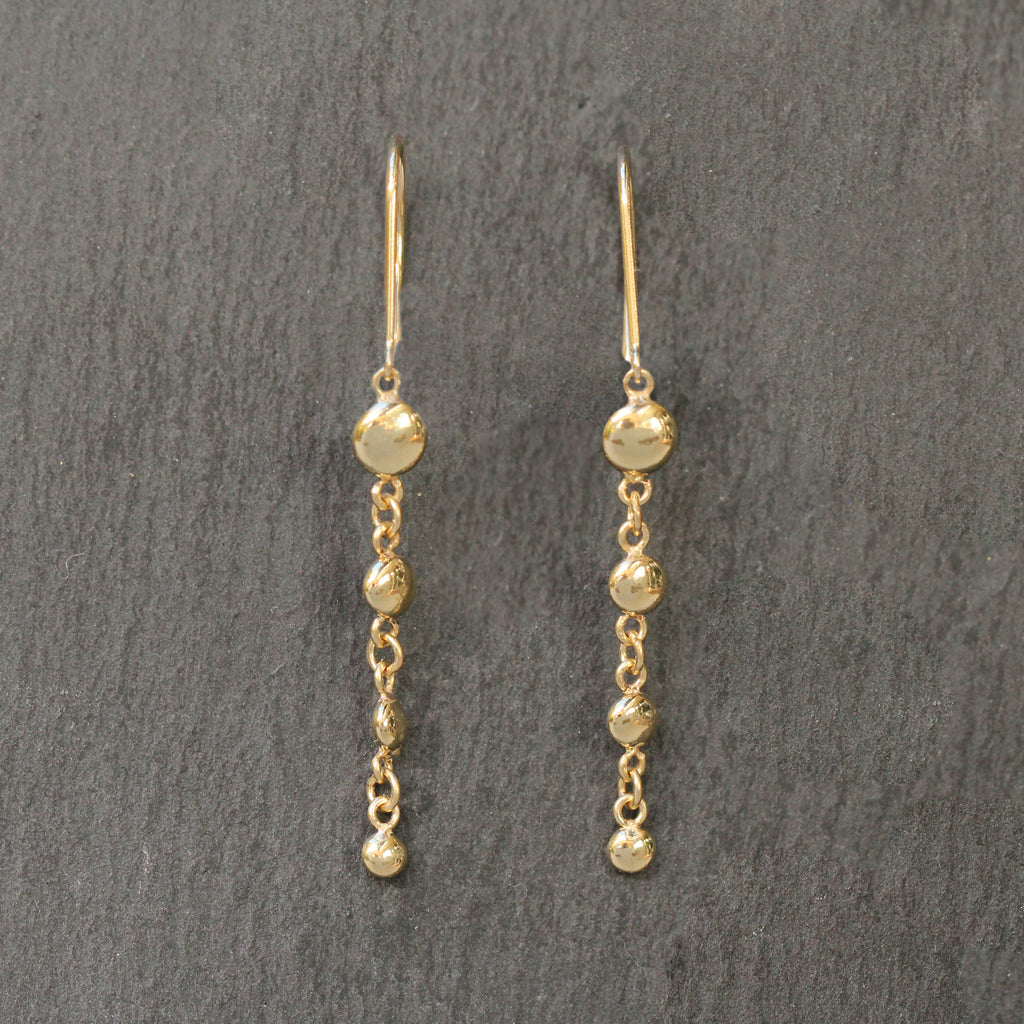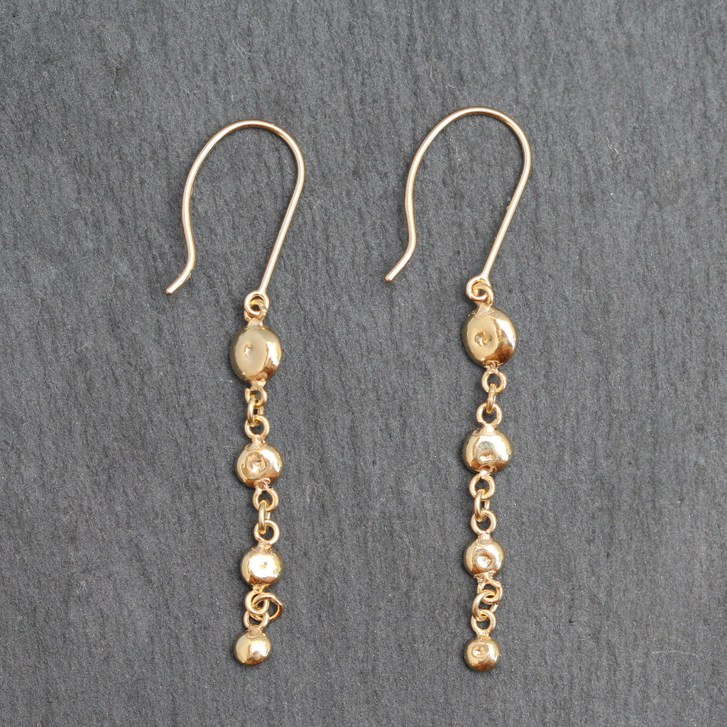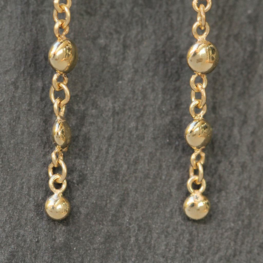 These 14k Yellow Gold Nugget Earrings are the perfect twist on a classic style. Featuring gold grain station links graduated from large to small.
