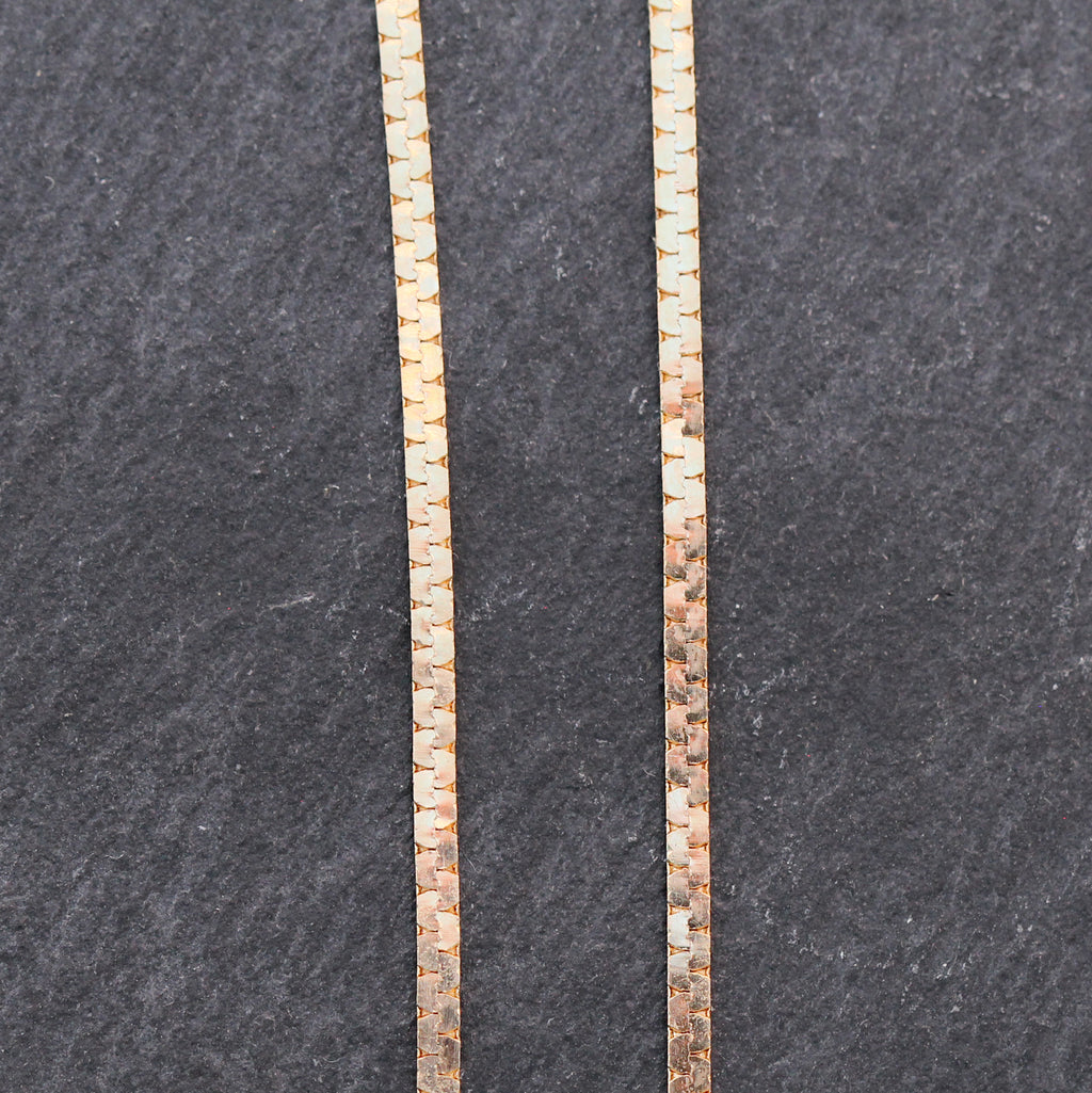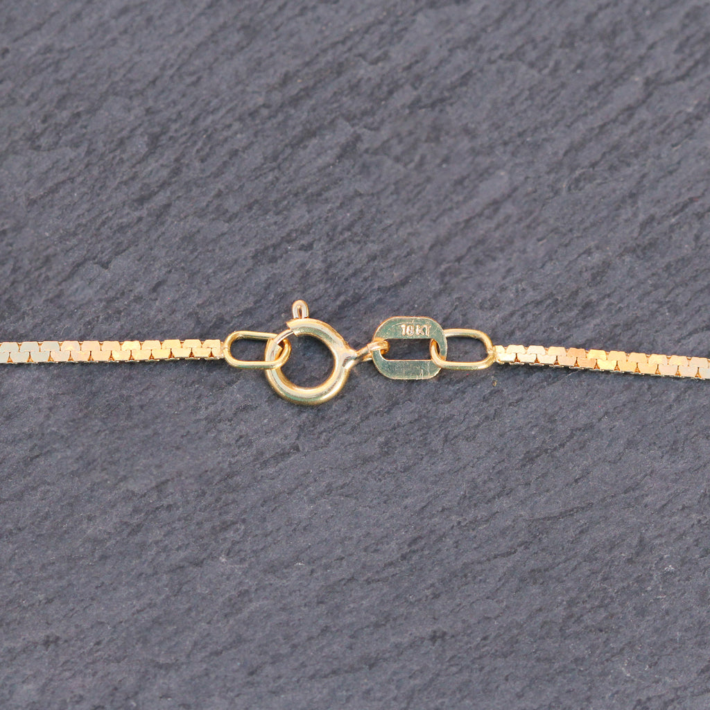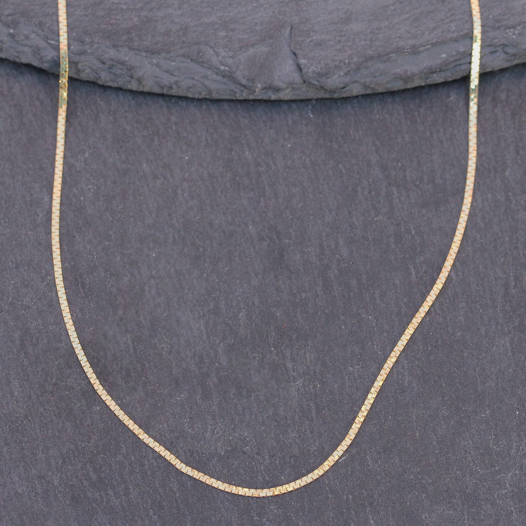 This 18k yellow gold chain link necklace features a flat box link style. It's perfect for layering and any neckmess!