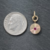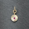 This beautiful sunburst style 14k gold and ruby charm features the perfect pop of color with the center round cut flush set ruby. It has been upcycled from a vintage stick pin creating a one of a kind, ethically made gem!