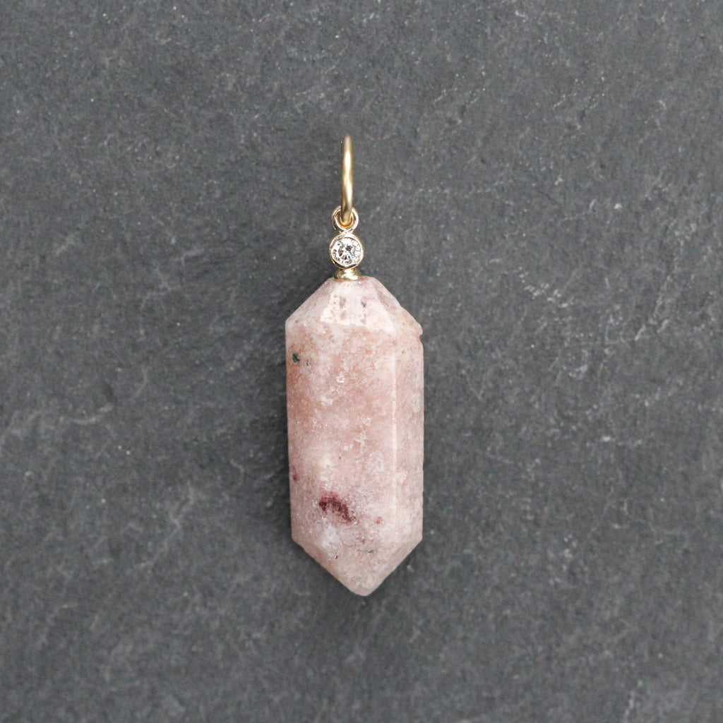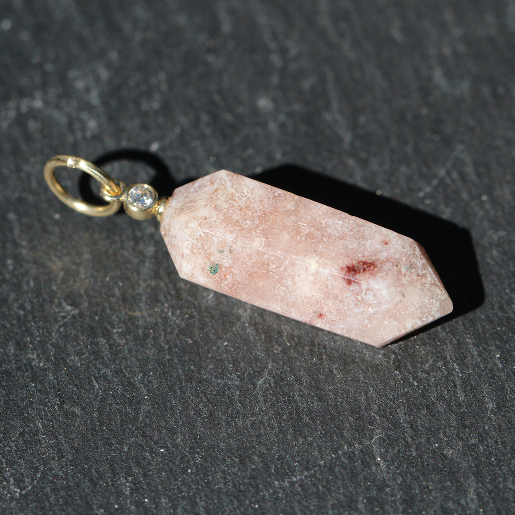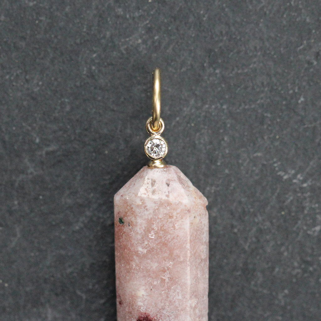 14k Gold Diamond + Strawberry Quartz Pendulum Pendant