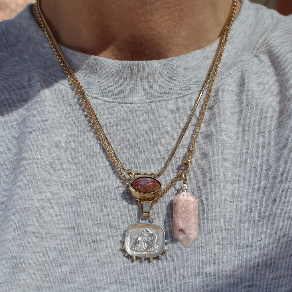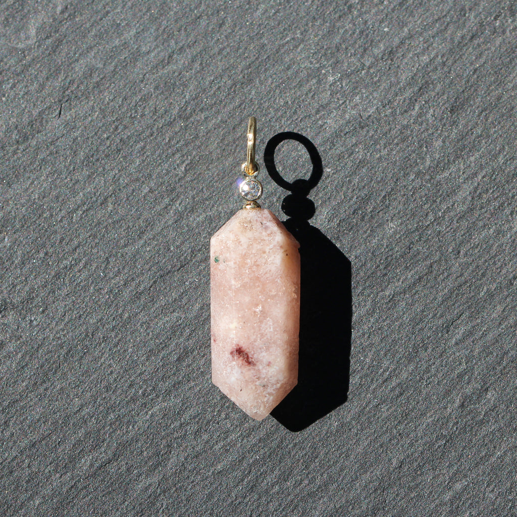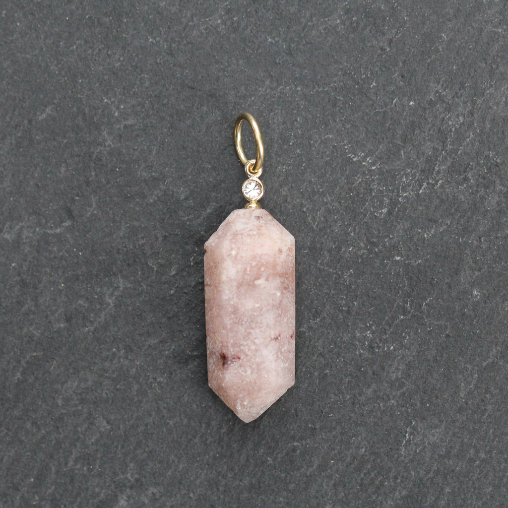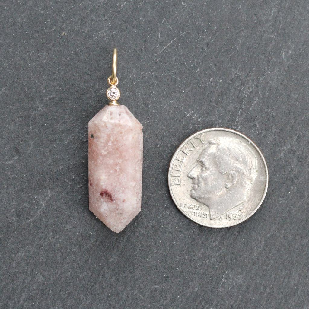 14k Gold Diamond + Strawberry Quartz Pendulum Pendant