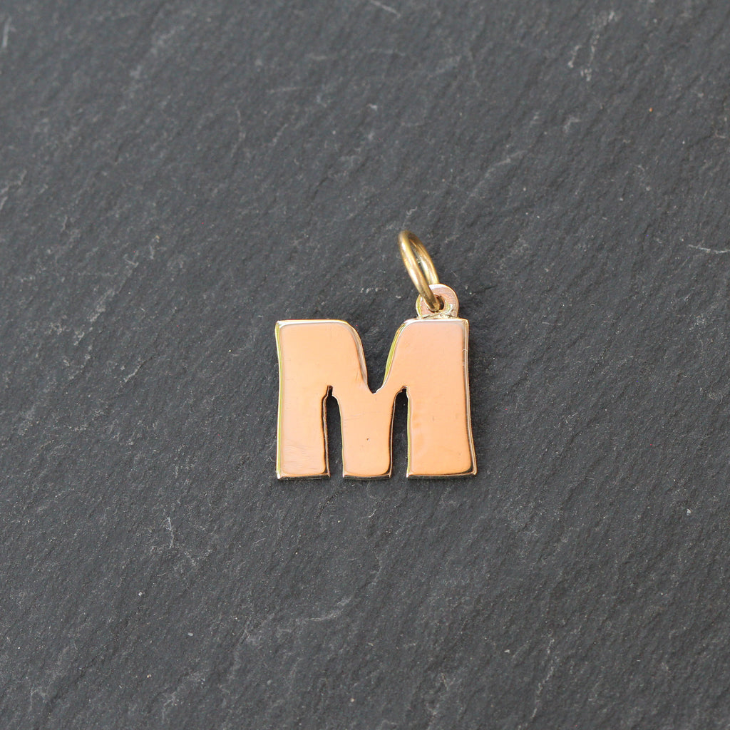 This 14k yellow gold hand cut retro style letter M initial pendant is the perfect simple add to any neckmess and a great gift idea as well!