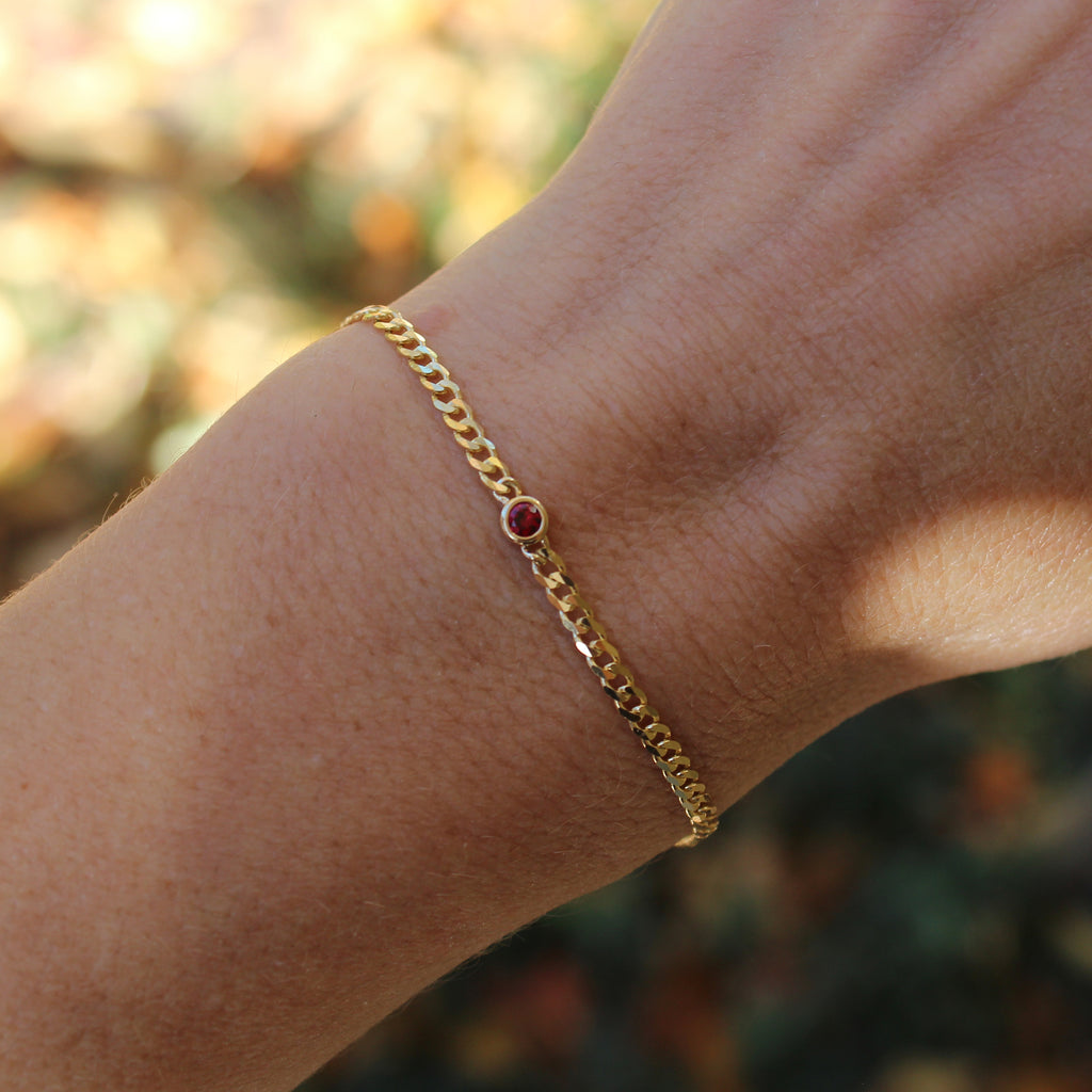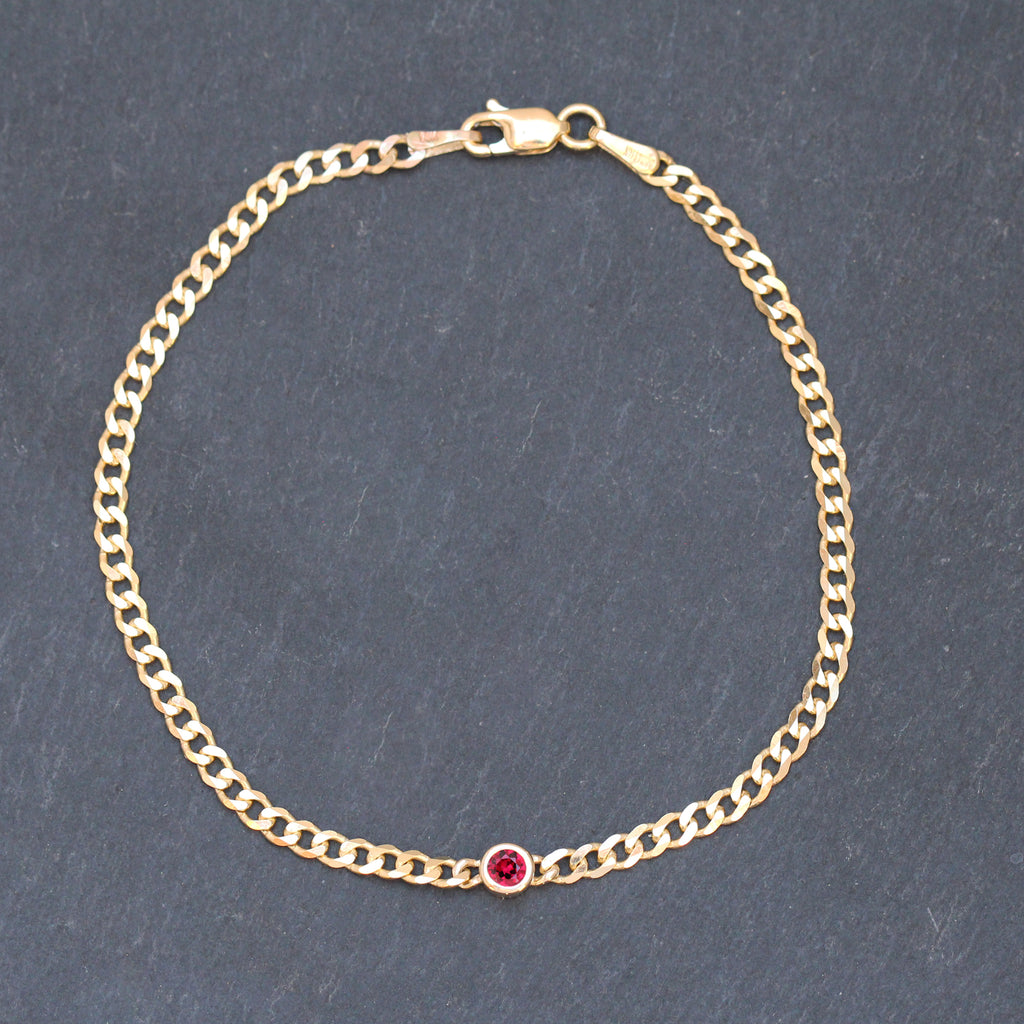 14k Gold + Ruby Curb Chain Link Station Bracelet