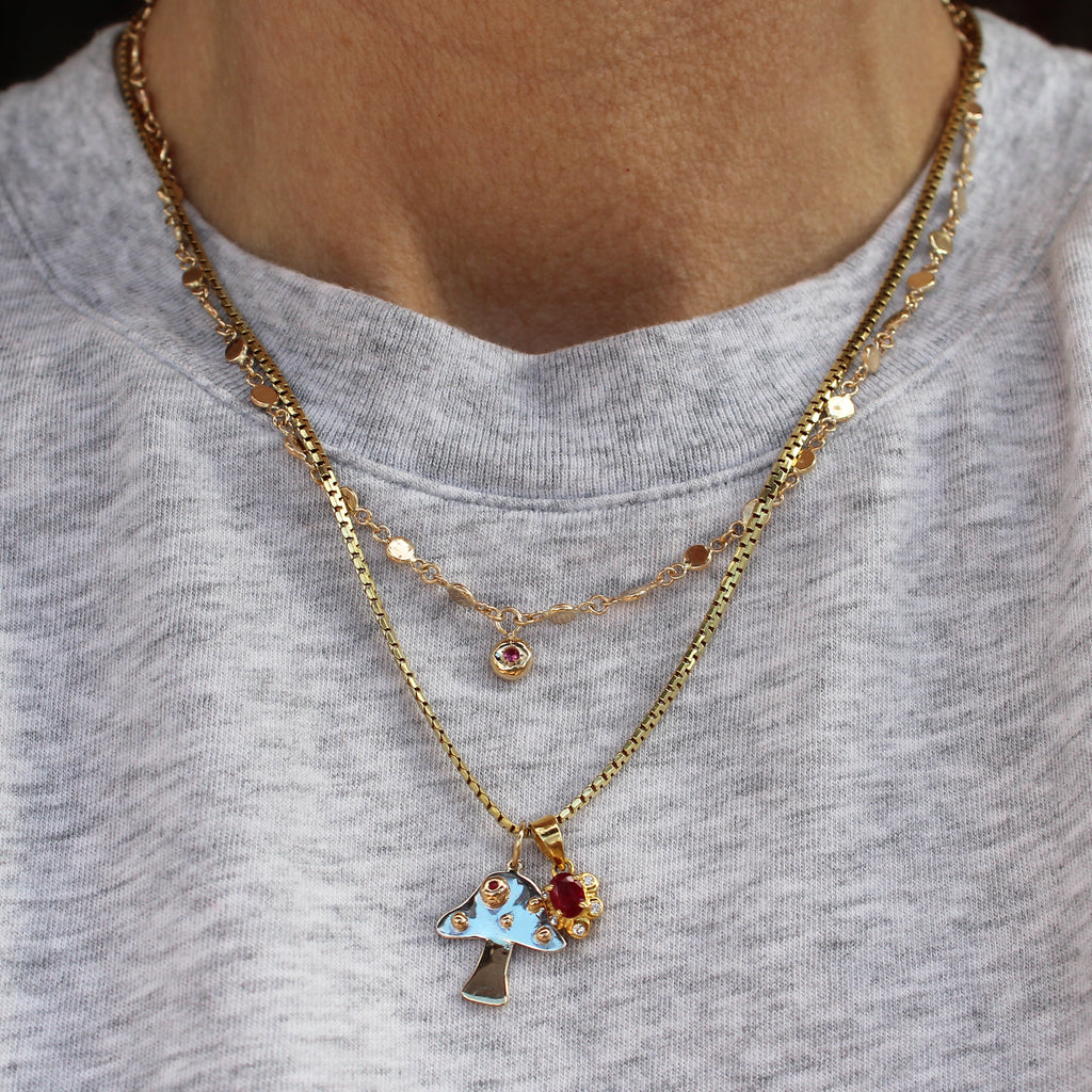 ⊹ 14k Yellow Gold, Ruby + Diamond