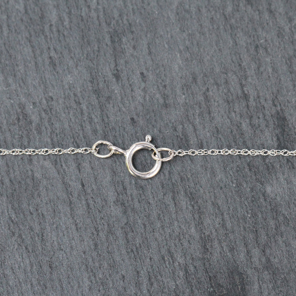 Note: There is a slight color difference between the chain and the charm due to the process of recycling the white gold used for the charm.