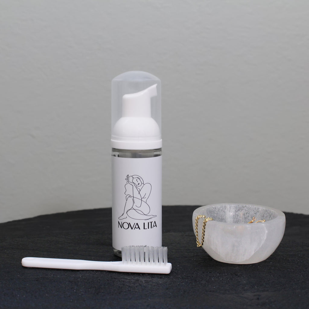 This Jewelry cleaner is the perfect go-to for any old heirlooms, tarnished metals or gems that just need a little extra brightening. It features a pump style application with a foam cleaning solution and includes a brush for scrubbing.