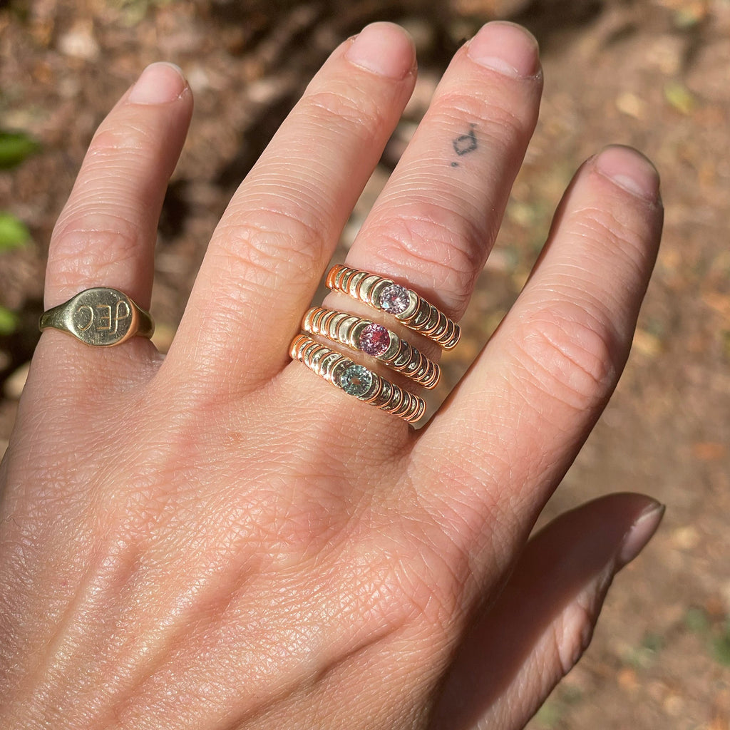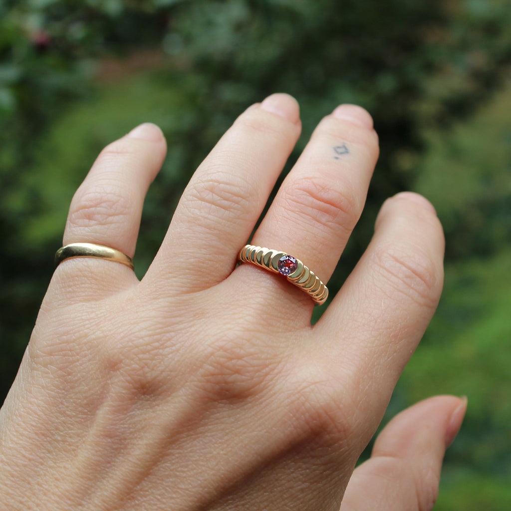 ⊹ 14k Yellow Gold + Mauve Sapphire