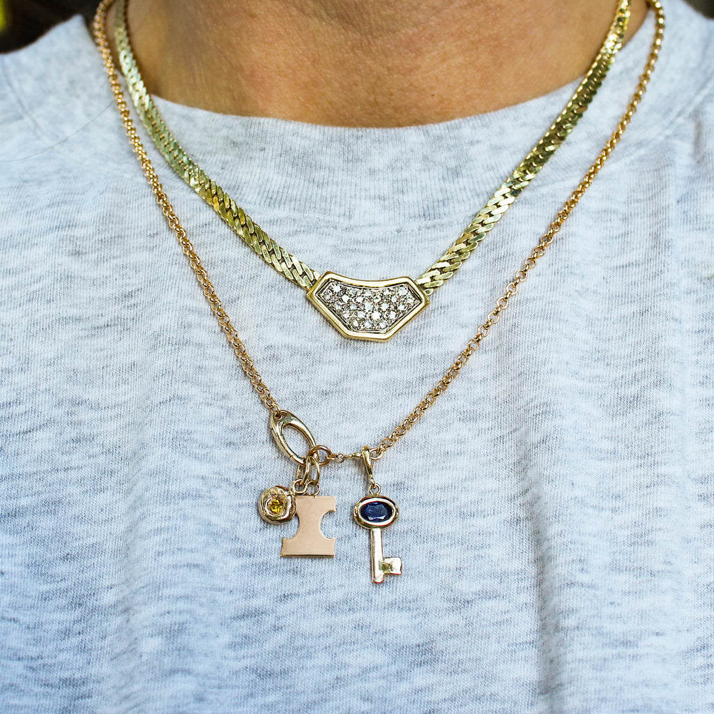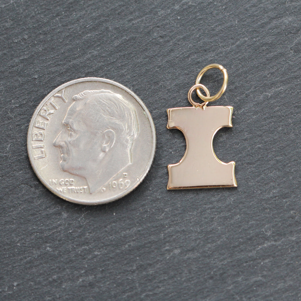This 14k yellow gold hand cut western-style letter I initial pendant is the perfect simple add to any neckmess and a great gift idea as well!