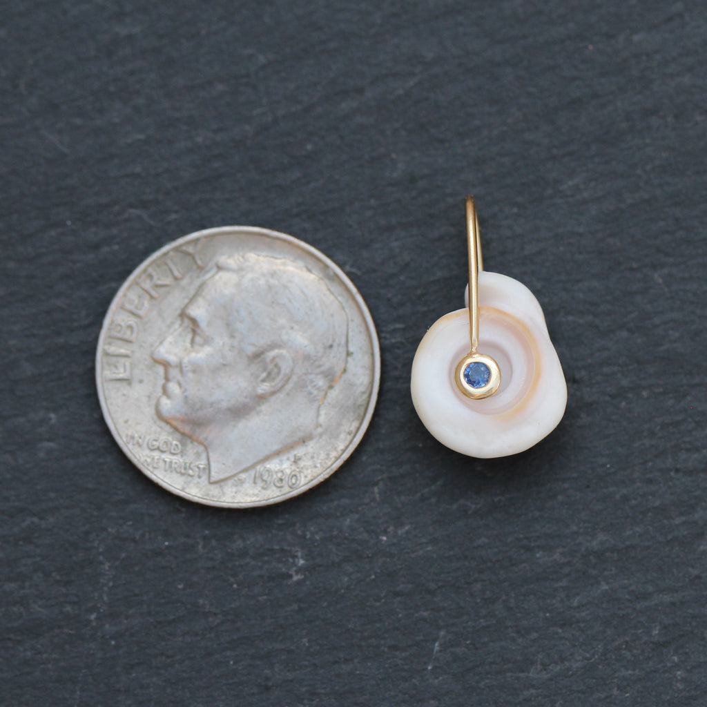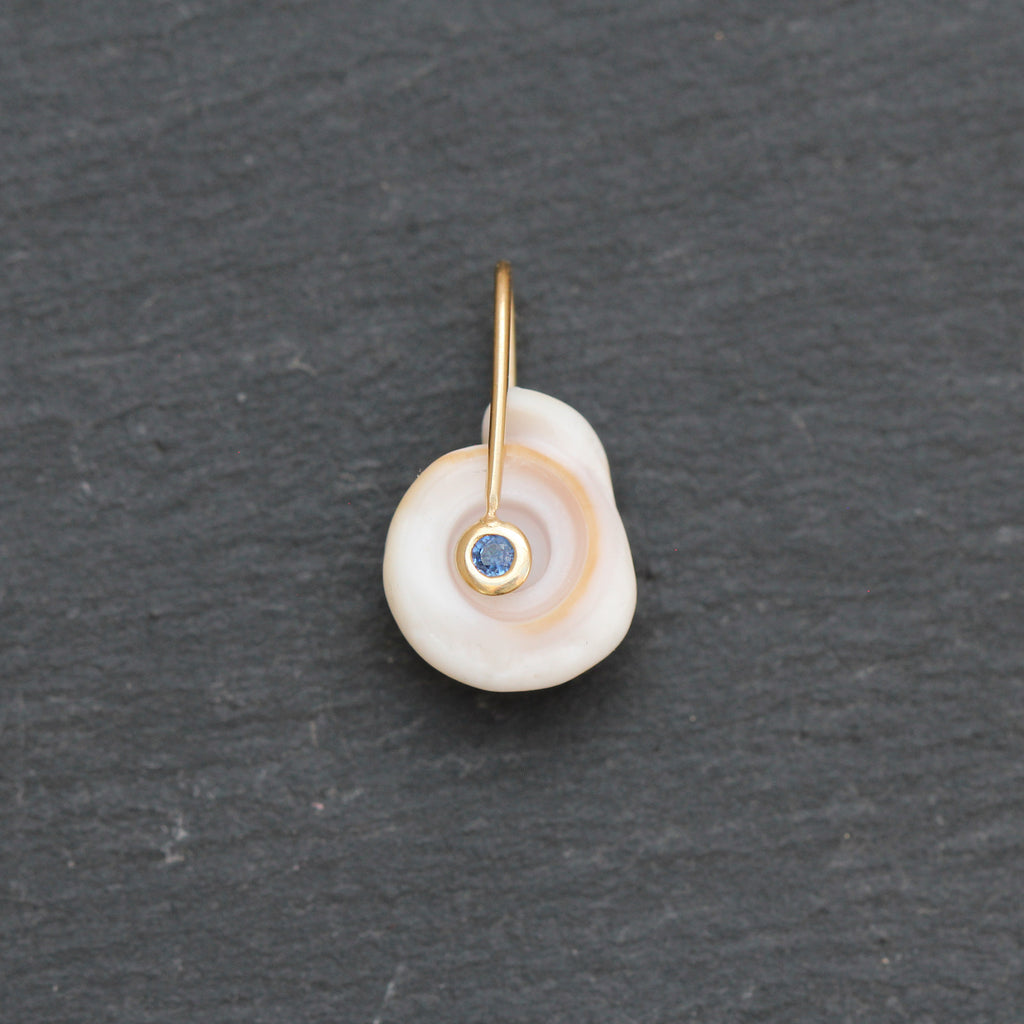 ⊹ Recycled 14k yellow gold, sapphire + repurposed shell