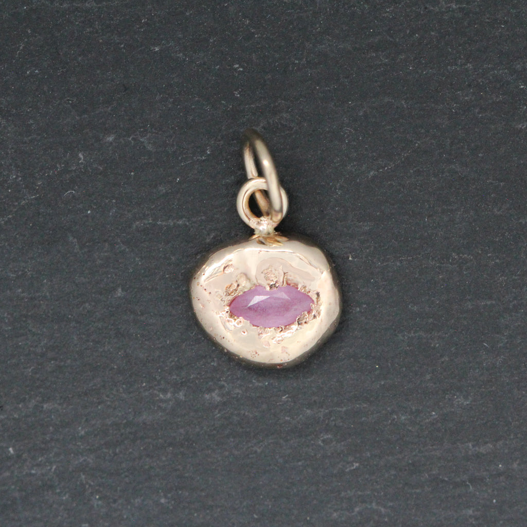 14k Gold + Pink Sapphire Organic Bubble Nugget Charm