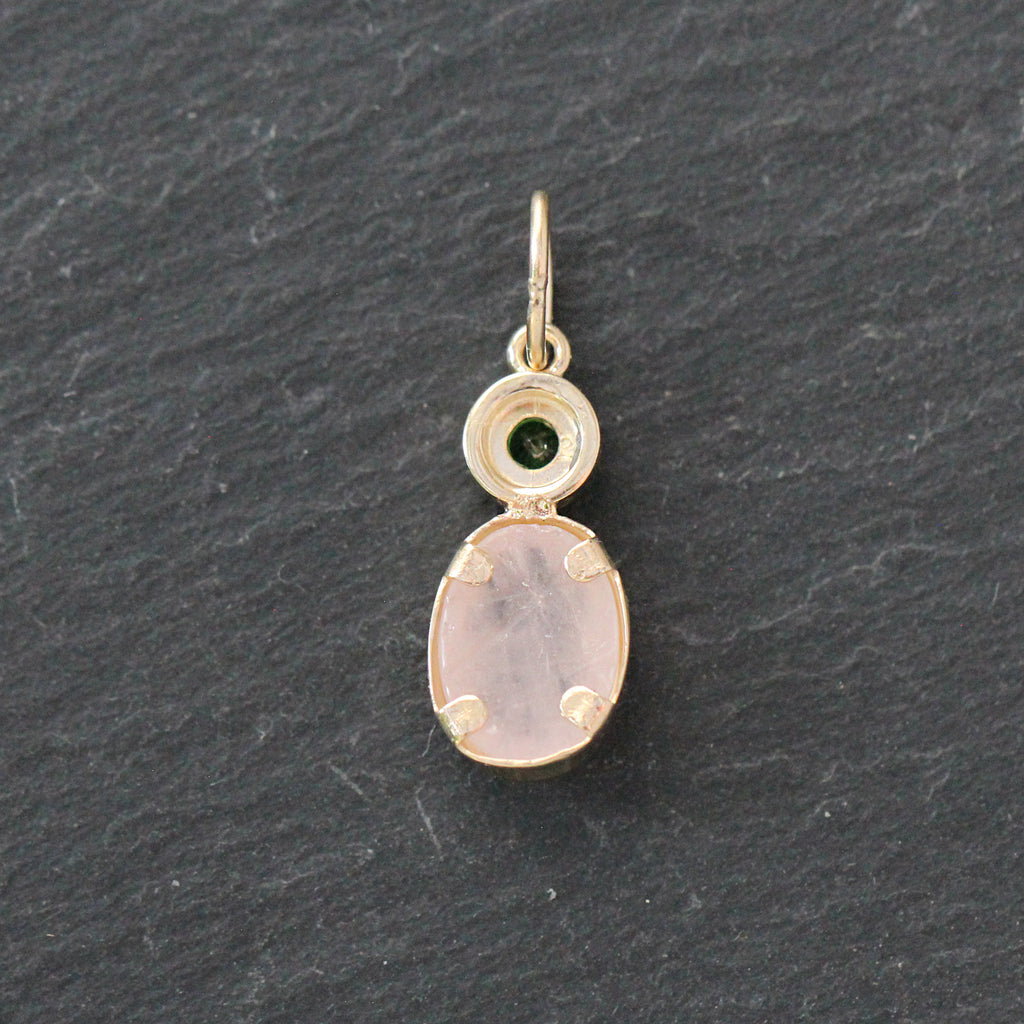 ⊹ Recycled 14k yellow gold, Rose Quartz + Tsavorite