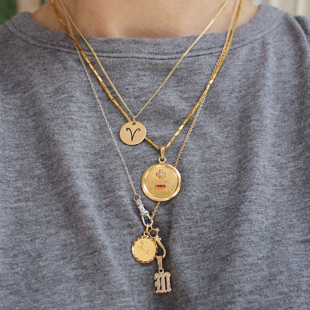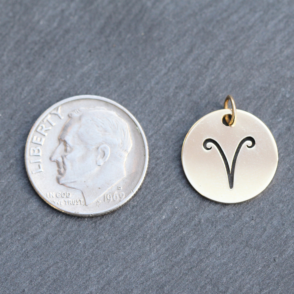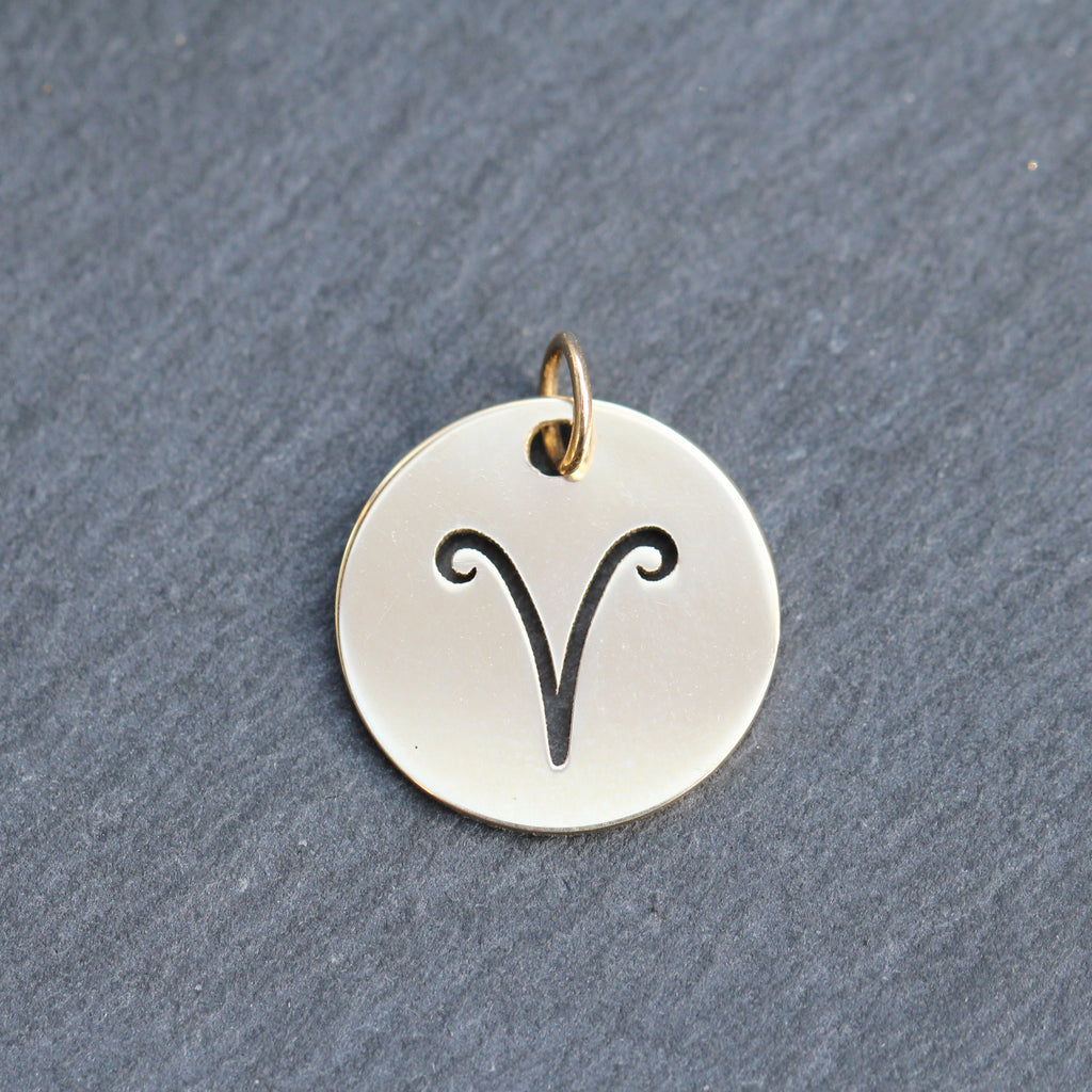This classic 14k yellow gold Aries zodiac pendant features a stencil style cut out of the Aries zodiac symbol topped off with a high polish finish.