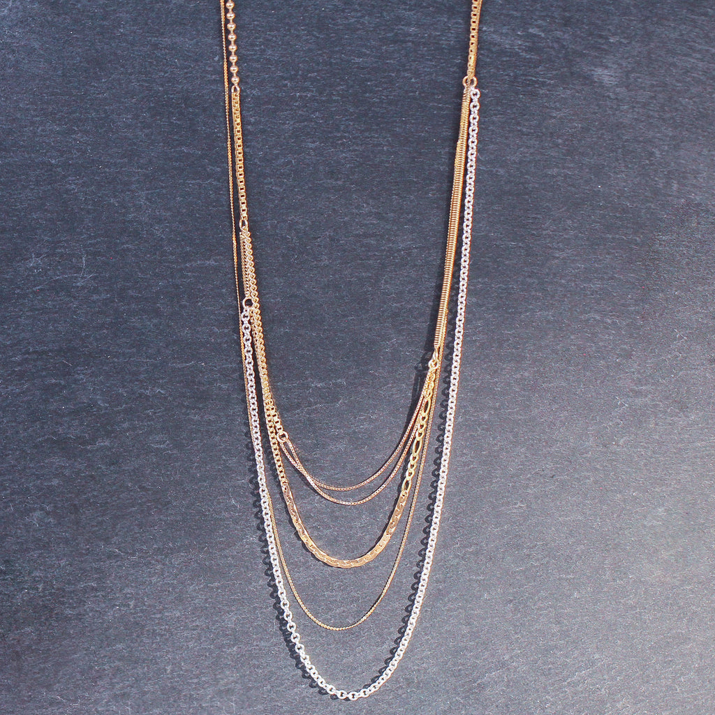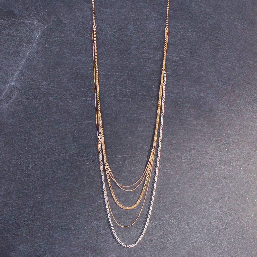 14k Gold + Sterling Multi Chain Drop Station Necklace